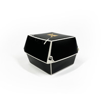 Cajas de hamburguesas biodegradables desechables Laminación mate Relieve Recubrimiento UV Papel de tarjeta blanco antiaceite Comida para llevar personalizable