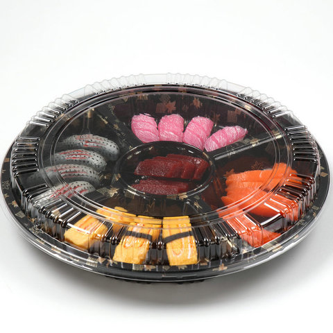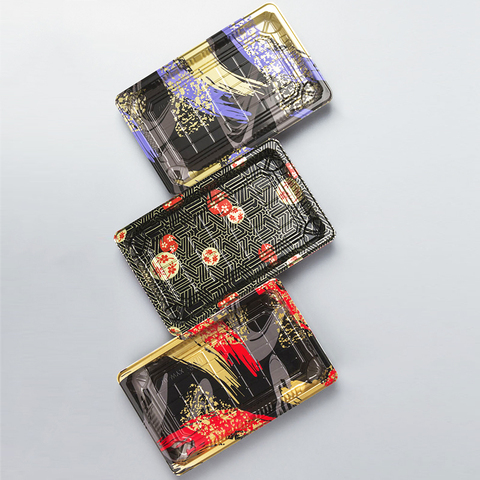 도매 폴리스티렌 배달 맞춤형 친환경 미니 황금 잎 포장 Ps 용기 뚜껑이있는 스시 트레이